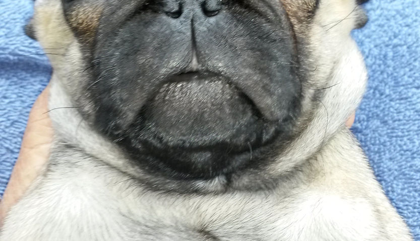 If you have the feeling that someone or something is staring at you from afar or across the room then chances are you're being stalked by Brutus. Following you from room to room whether you're in the bathroom or just out and about. Fail to notice him and he will breathe heavily until you acknowledge his presence. As the breather gets heavier and louder then you know he grows impatient. Continue to ignore and he will cry. Going to the restroom? Not alone you're not, he's there to make sure you don't fall in and you don't have any un-needed snacks at the ready. Past his inquisitive and observant nature, Brutus is gentle and loving. He loves to give kisses in exchange for a nice belly rub or acknowledgment of your affection. Attention is all this love-Pug craves.